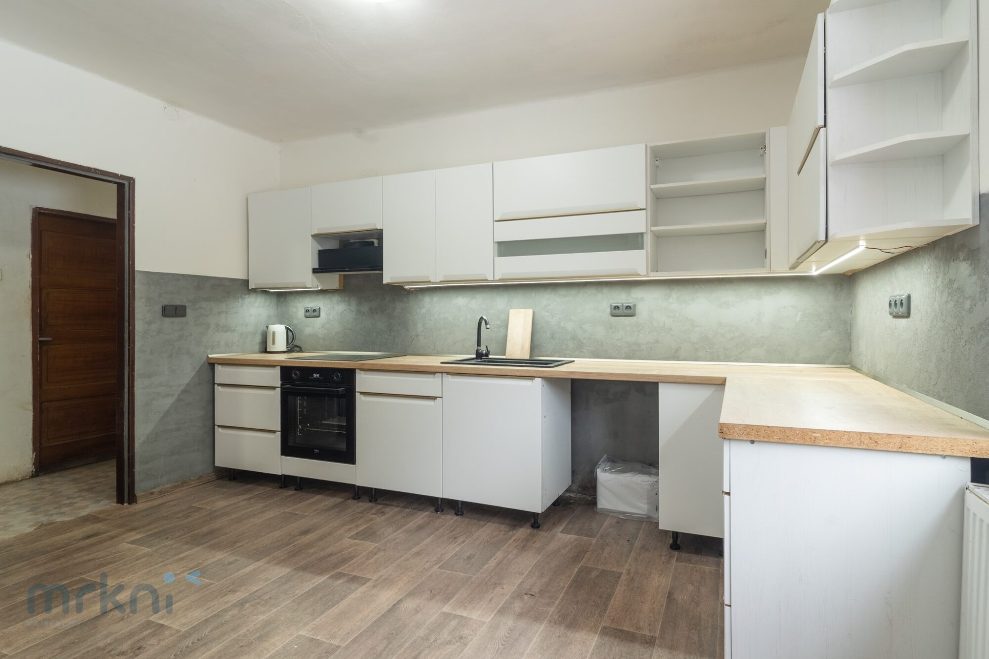 V přízemí domu se nachází dispozice 2+1. Tato část již prošla částečnou rekonstrukcí – vznikla zde nová kuchyně, byly provedeny nové omítky a část rozvodů je již připravena na moderní standard bydlení. Koupelna v přízemí je zatím v původním stavu, což dává novému majiteli prostor vytvořit si ji přesně podle vlastních představ.
