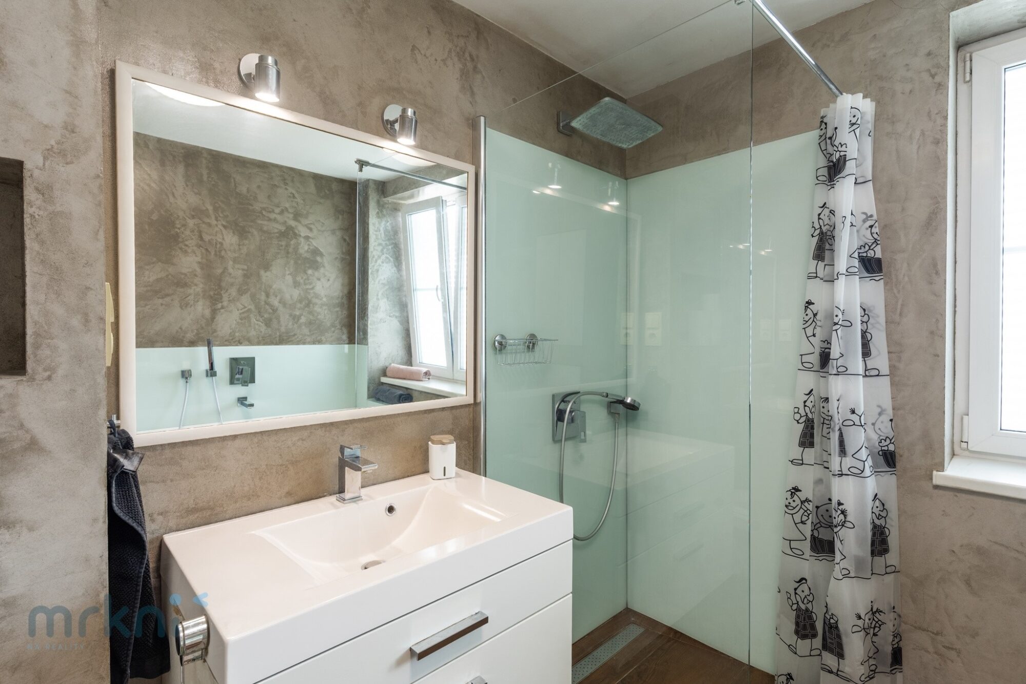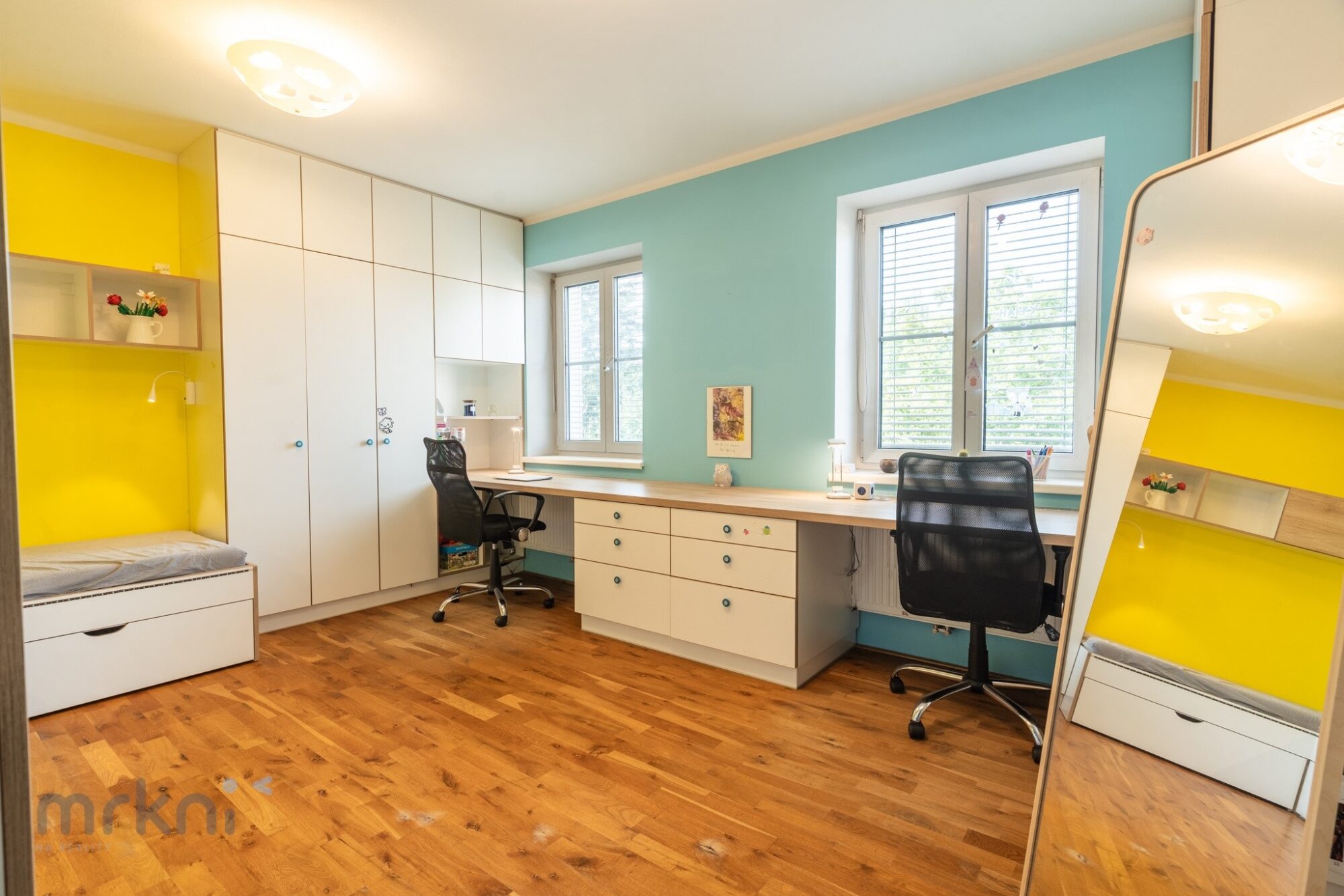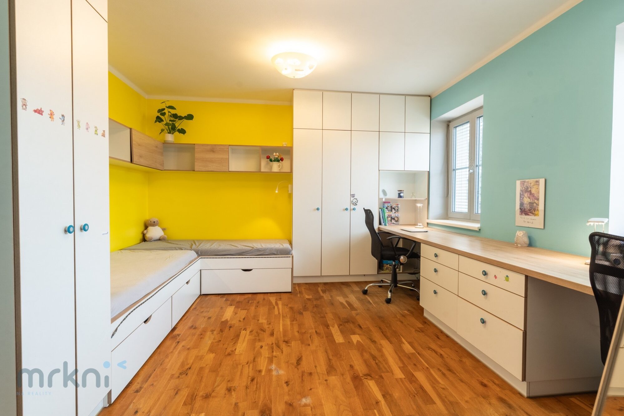 Dispozici tvoří obývací pokoj, ložnice a dětský pokoj s vestavěným nábytkem, připravený pro dvě děti. Prostorná kuchyně s ostrůvkem a jídelním stolem je ideálním centrem rodinného života. Koupelna je vybavena vanou i sprchovým koutem s kaleným sklem a podlahovým vytápěním, takže nabízí pohodlí i praktičnost.