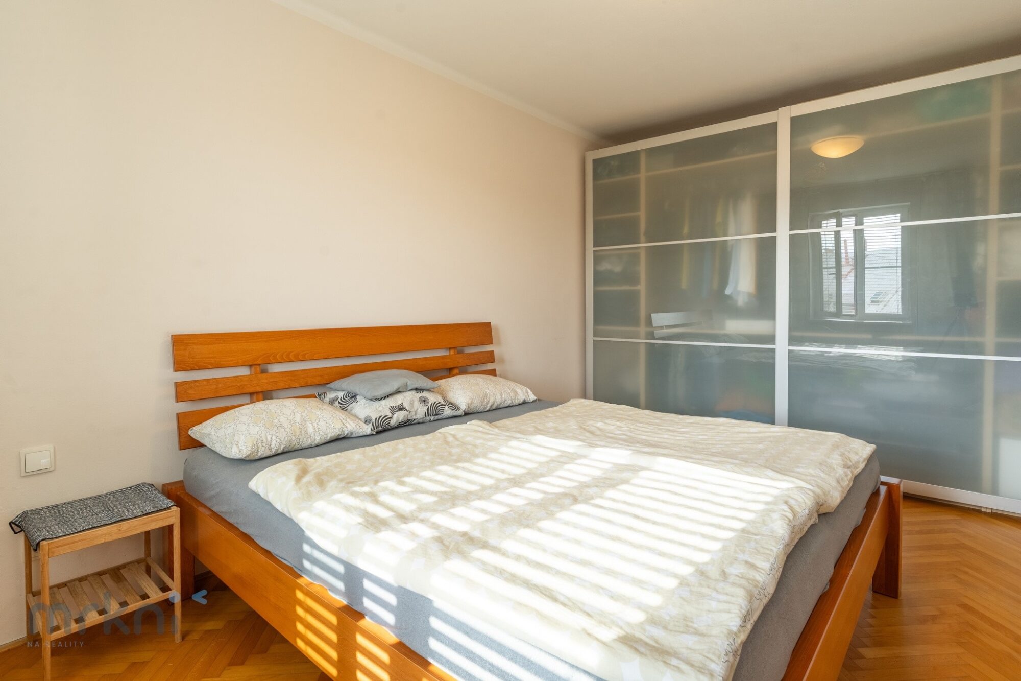 O komfort se starají trojskla s venkovními žaluziemi, dřevěné parkety a praktické niky v chodbě, kde najdete úložné prostory, pračku, sušičku i plynový kotel značky Buderus. Velkou výhodou tohoto bytu je, že k němu náleží hned několik prostor: malý sklep, velký sklep o velikosti 15 m², půdní koje 4 m² a mansarda o 10 m², která dává možnost rozšíření prostoru. Dále je k dispozici společná prádelna a další půdní prostory.