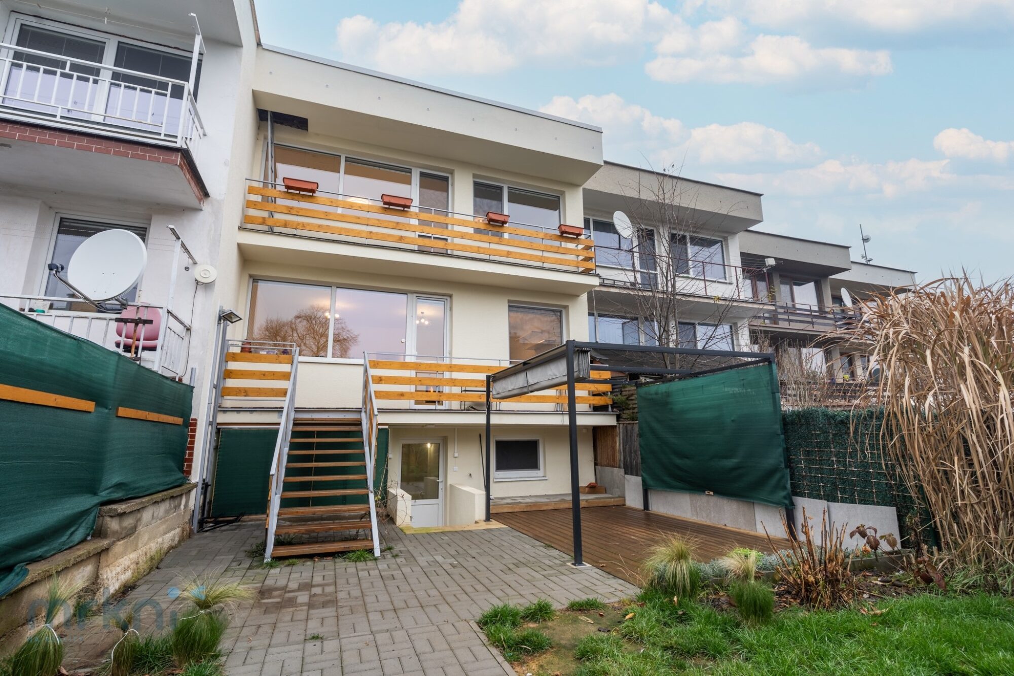 Zahrada je kompletně upravená a poskytuje příjemné soukromí i prostor pro odpočinek. Praktickým benefitem je přístup jak z obývacího pokoje, tak ze suterénu domu.