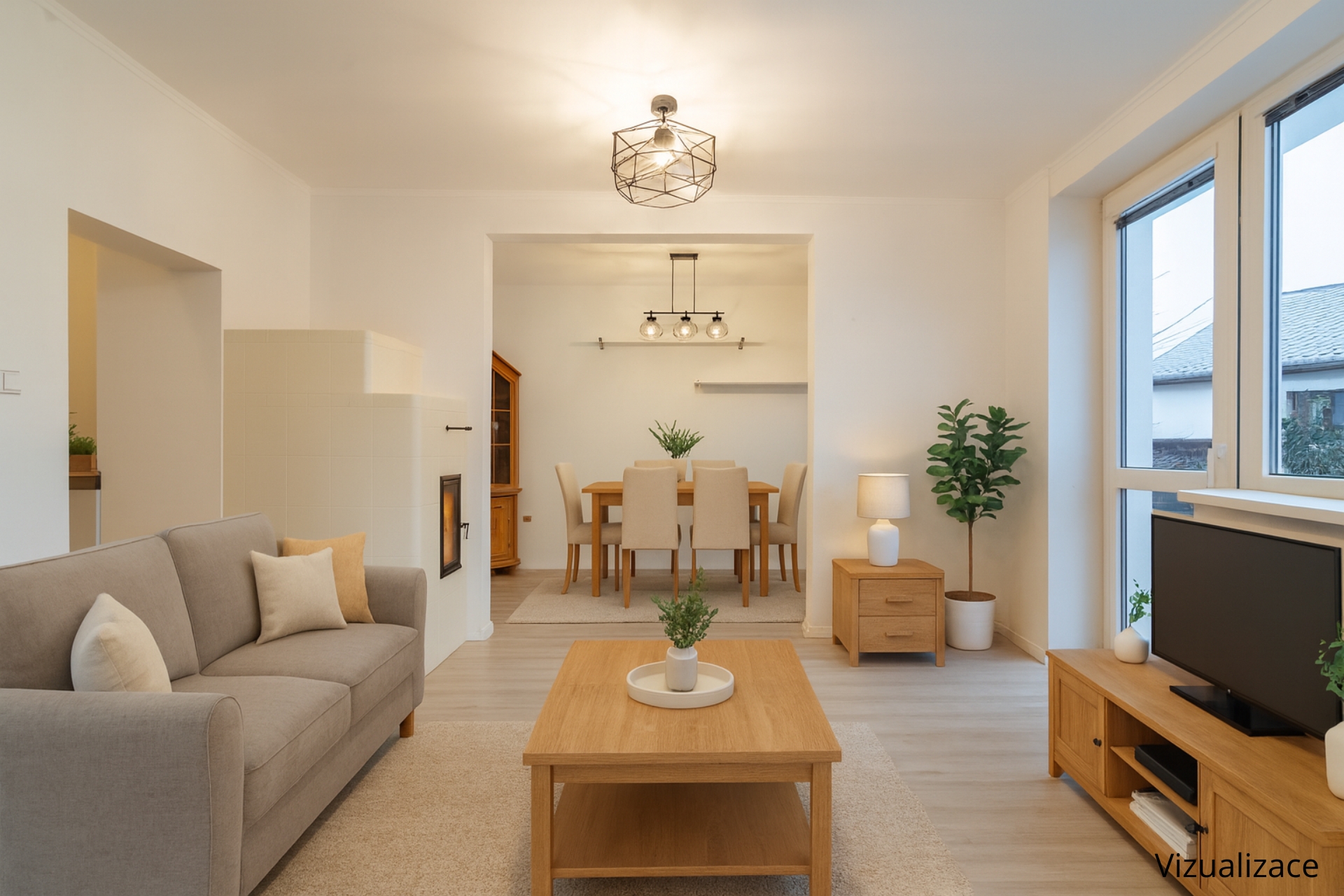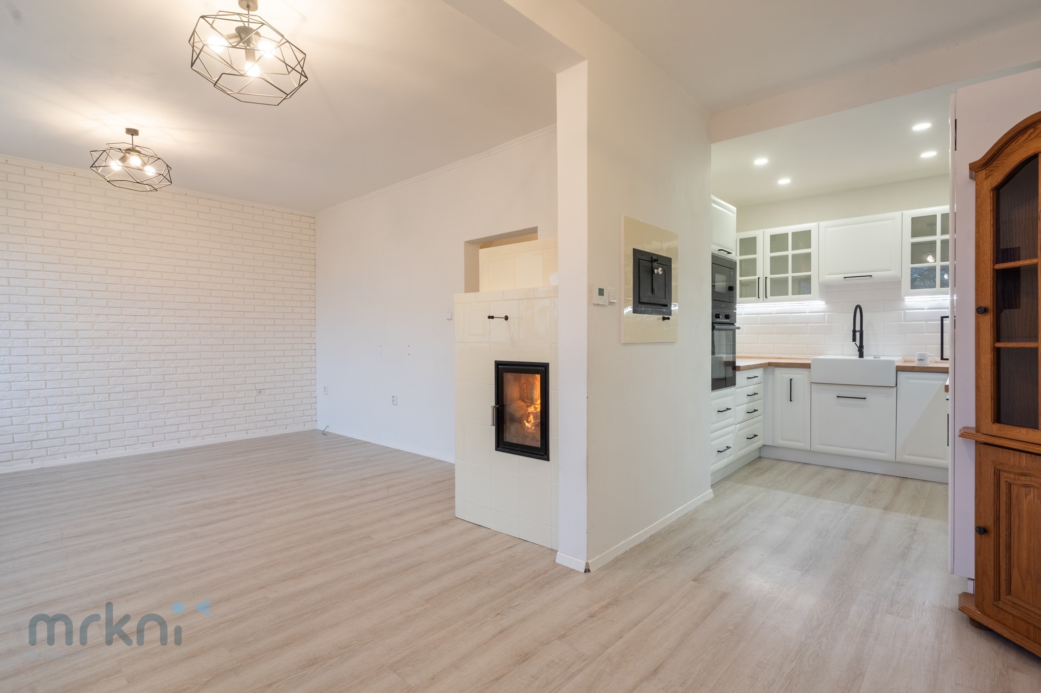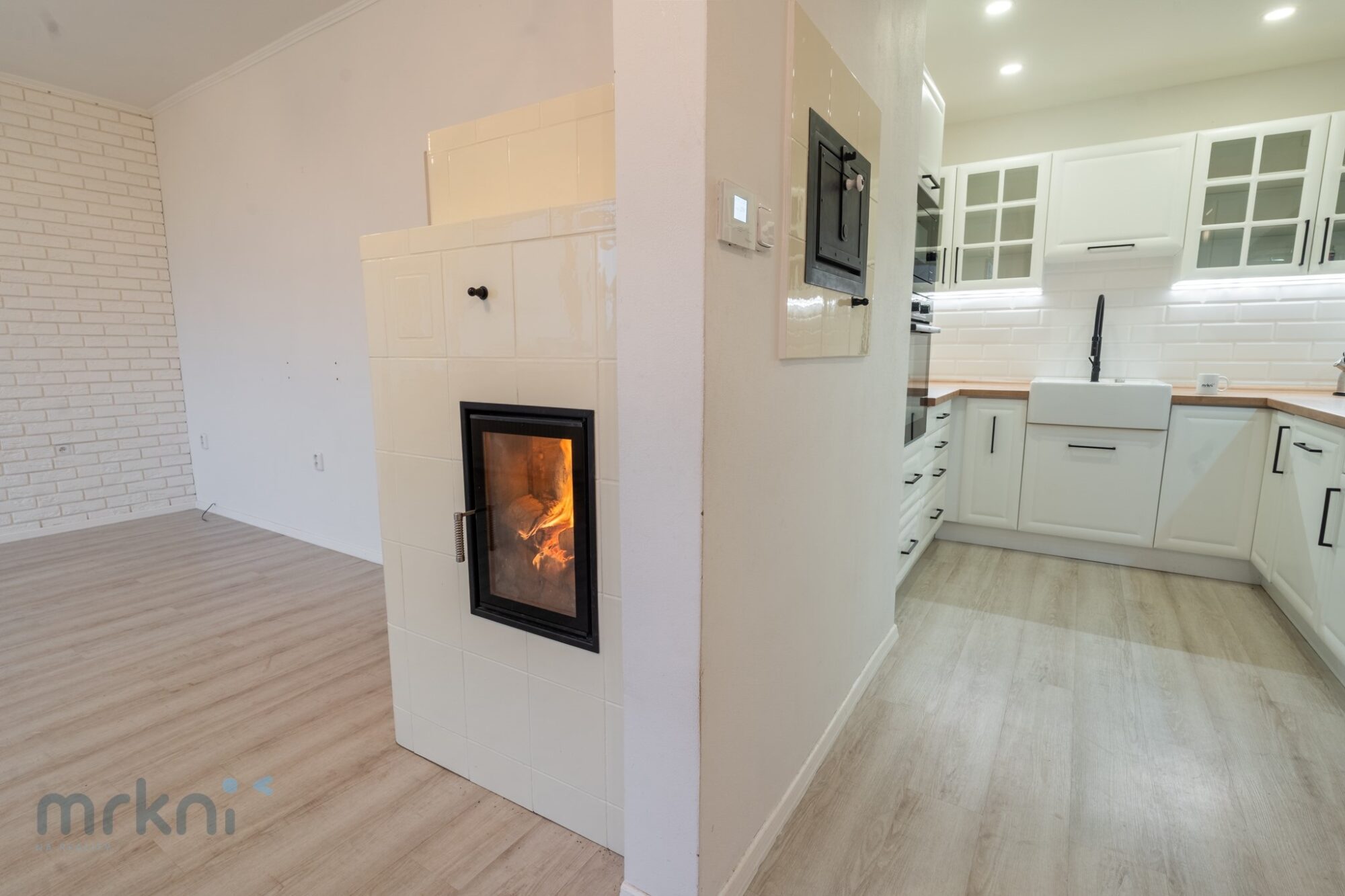 Významným benefitem jsou nová moderní kachlová kamna s teplovodním výměníkem a zabudovanou troubou směrem do kuchyně. Kamna nejsou pouze designovým doplňkem, ale plnohodnotným zdrojem tepla: