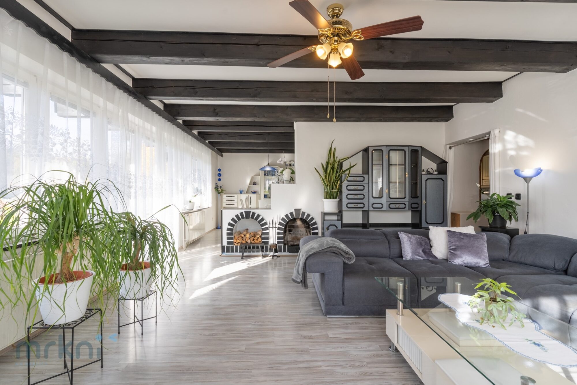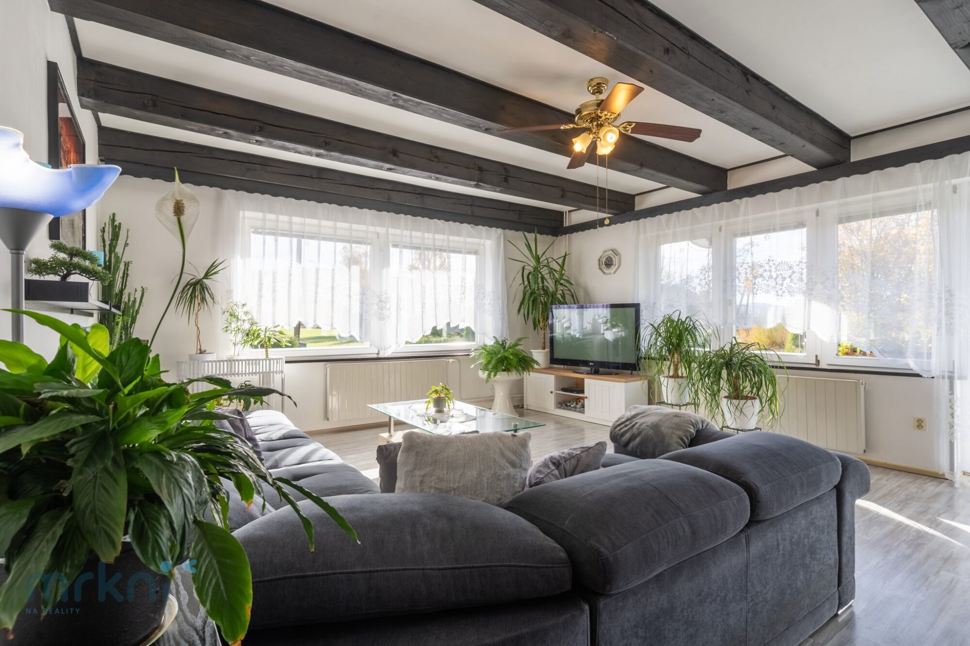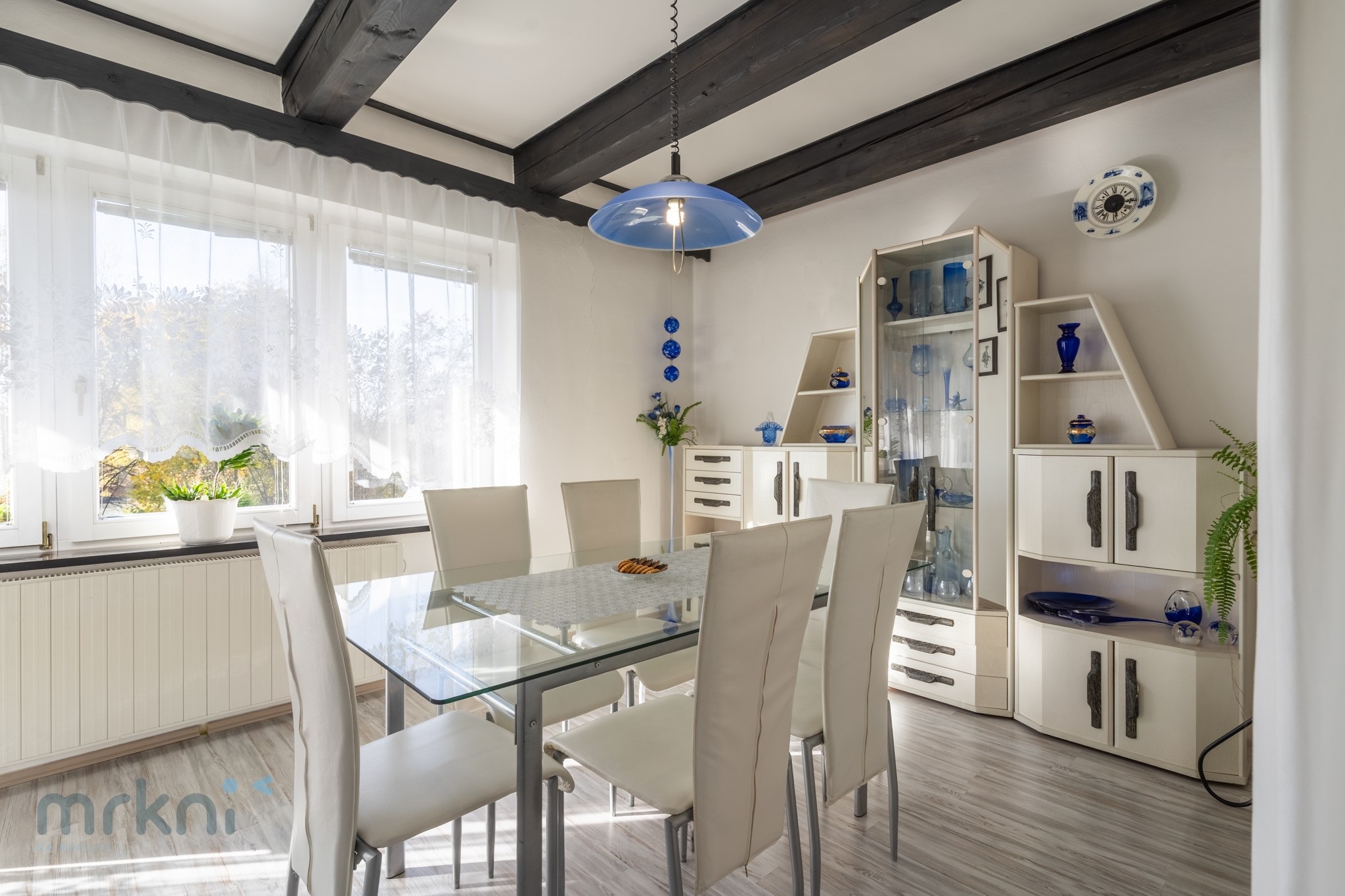 - prostorná kuchyně → jídelna → obývací pokoj (propojené, přirozeně navazují)