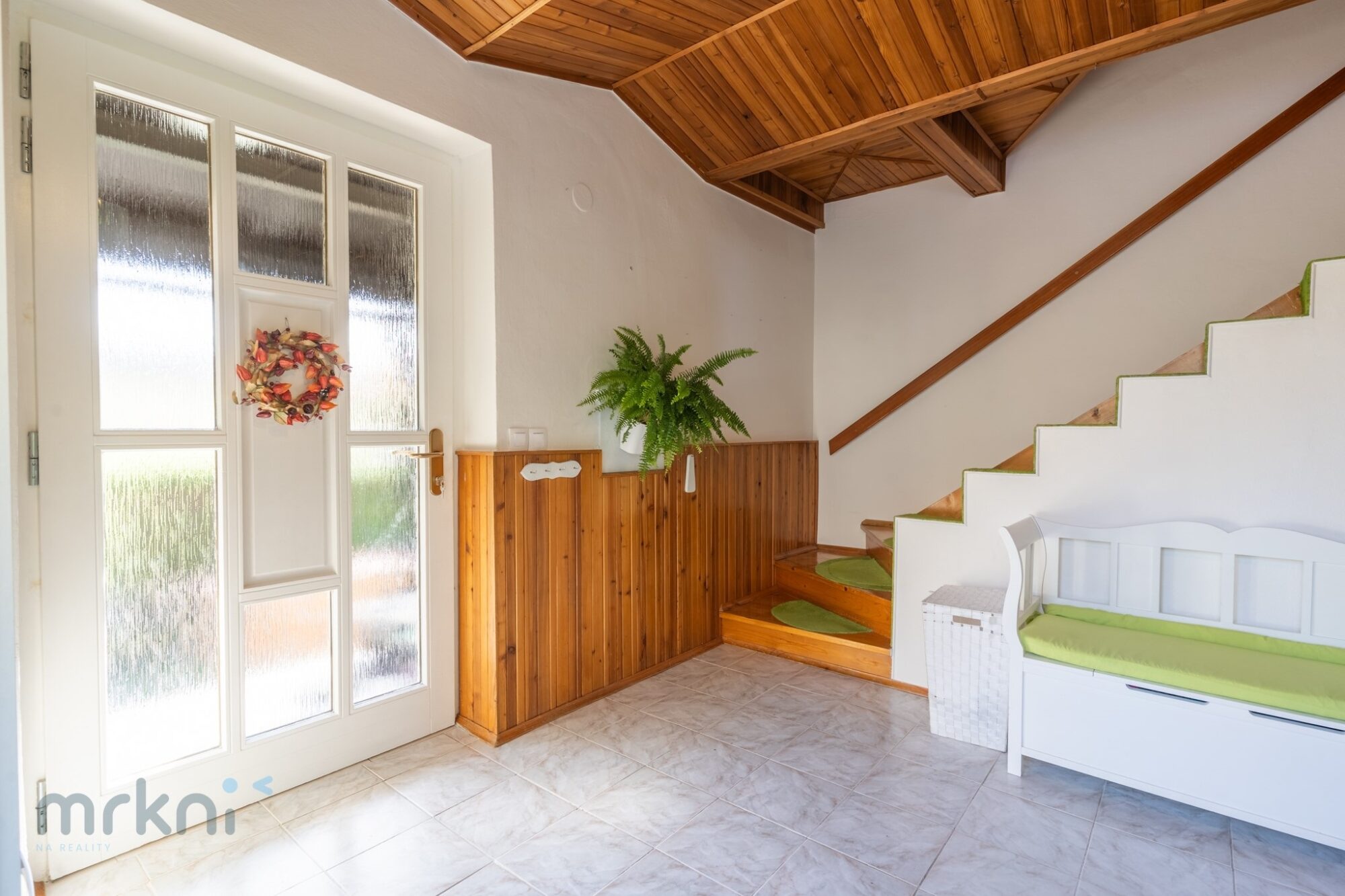 - po dřevěném schodišti se jde buď do sklepa, nebo do patra