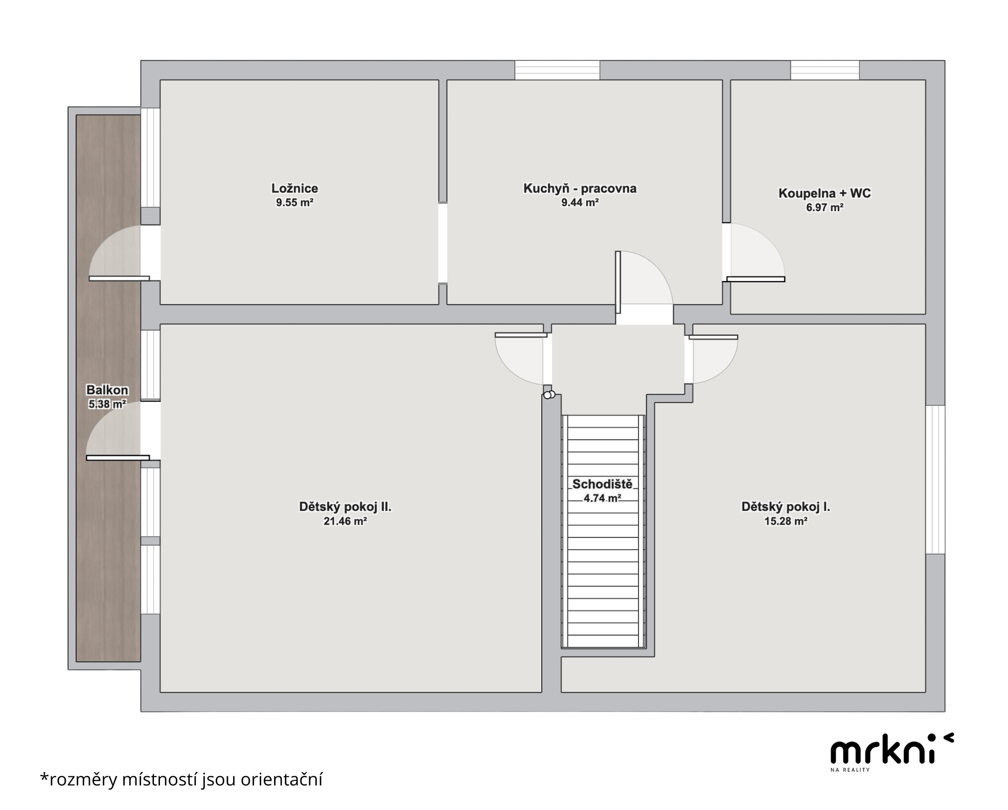 - 3 samostatné ložnice, dvě s přístupem na balkon