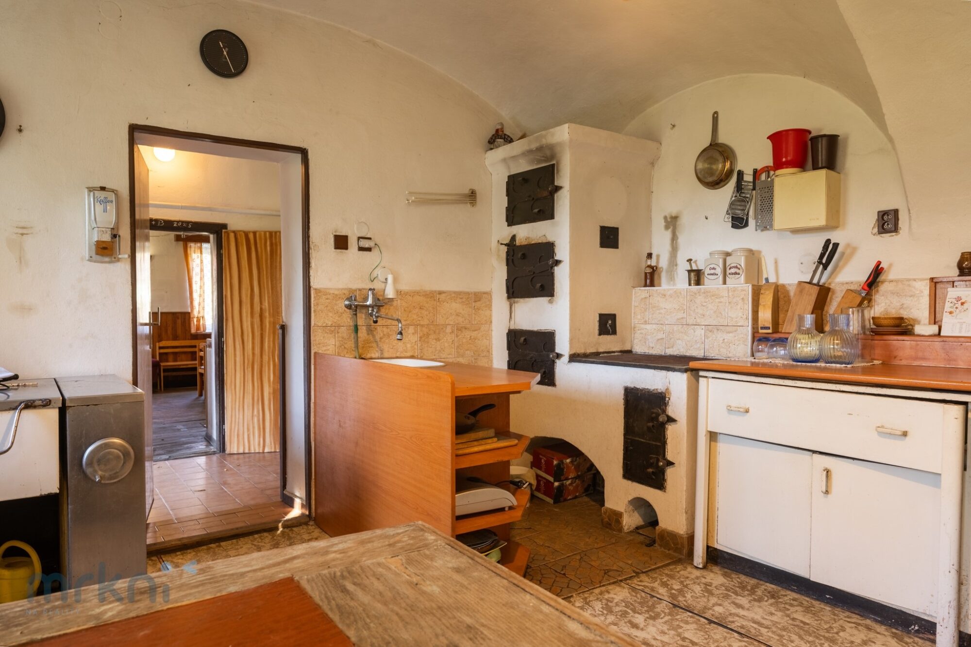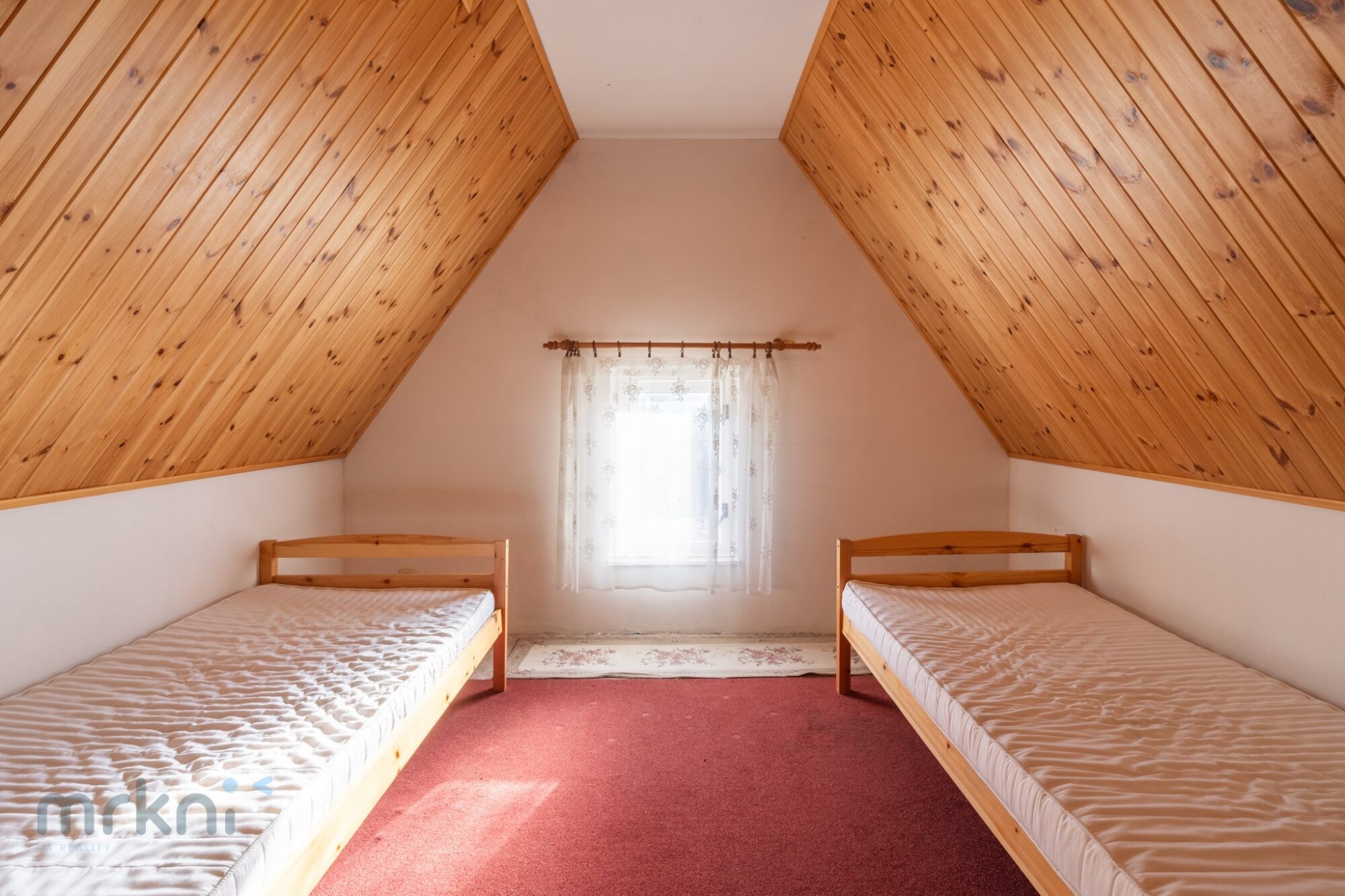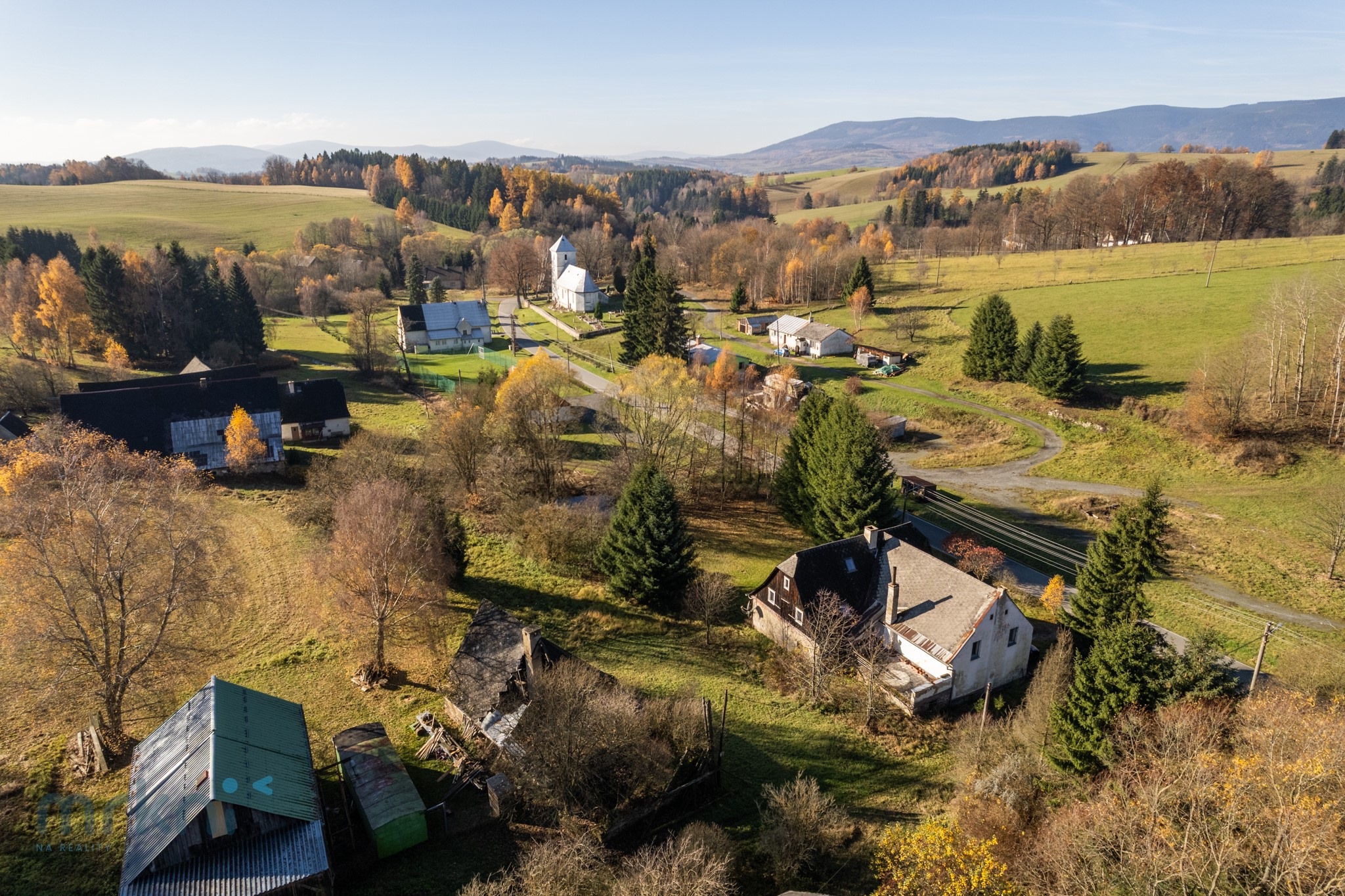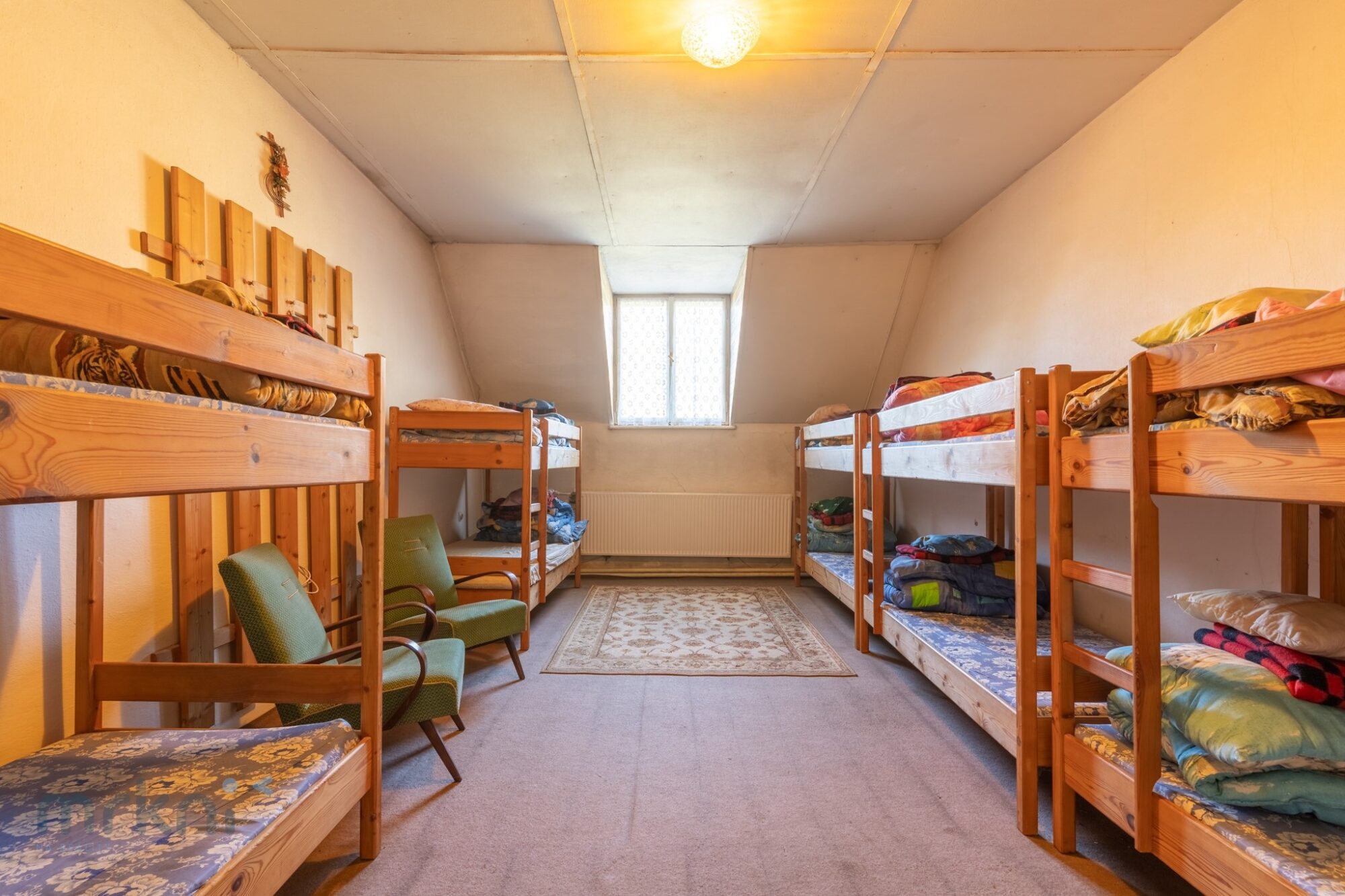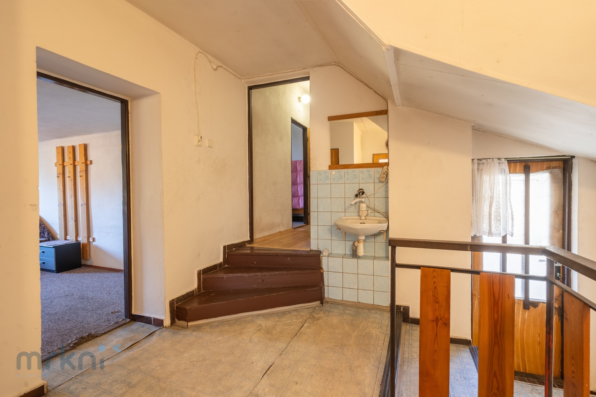 Dominantou chalupy je velká společenská místnost s krbem — přesně to místo, kde se večer potkává celá parta, vznikají vzpomínky a kde dům skutečně ožívá. Díky velikosti objektu můžete po rekonstrukci pohodlně vytvořit kapacitu 20–30 lůžek, což je dnes jedna z nejvyhledávanějších forem ubytování v horách. Voda je ze studny, odpad je řešen jímkou na pozemku a aktuální vytápění zajišťuje kotel na tuhá paliva.