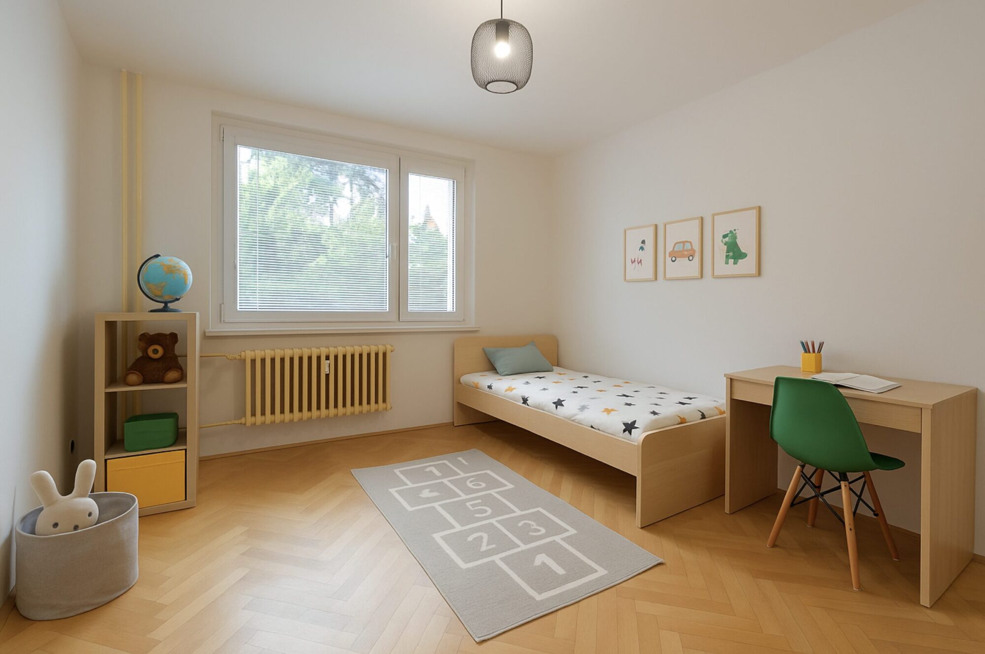 Díky své dispozici, světlosti a praktickému zázemí je ideální volbou pro rodinu, která hledá kvalitní bydlení bez nutnosti dalších investic. Byt nabízí tři samostatné pokoje, kuchyni s jídelním koutem, koupelnu se zděným jádrem a oddělenou toaletou. Kromě toho je jeho součástí i praktická samostatná šatna, která poskytuje pohodlný úložný prostor. Kuchyňská linka je zánovní, plně funkční a připravená k okamžitému používání. Celý byt působí velmi svěže a vzdušně. K bytu náleží také zděný sklep a přístup do společných prostor domu.